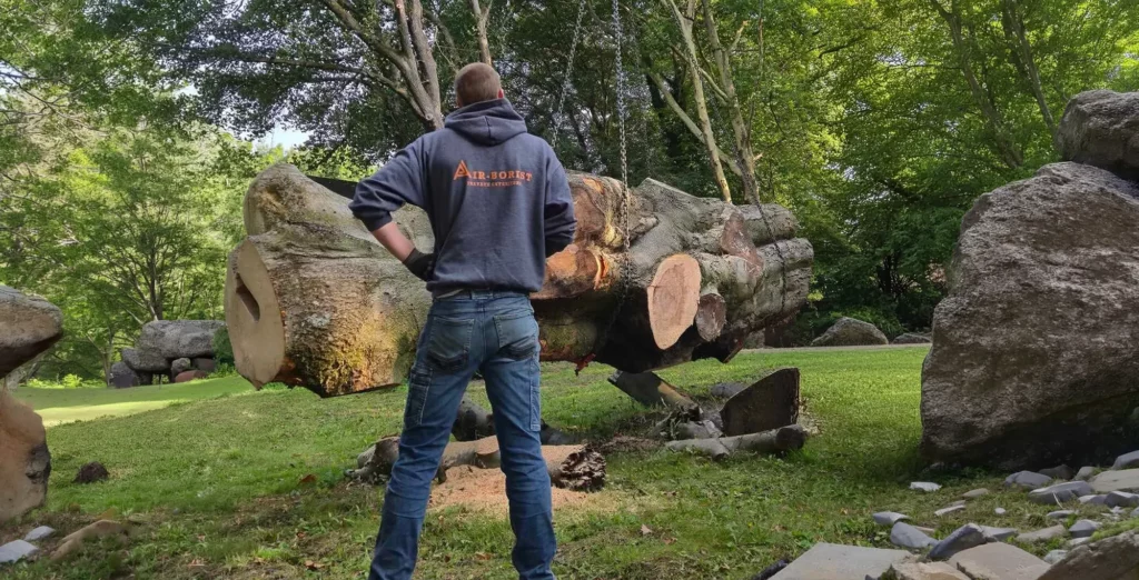 Lorsque l’arbre devient instable, malade ou présente un danger de chute, l’abattage peut s’imposer. Deux méthodes sont utilisées selon la configuration :